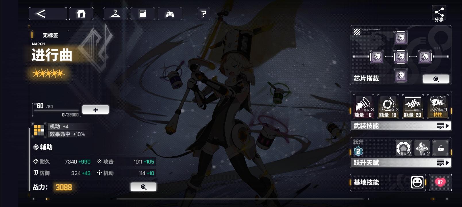 基地情况一般,着急不来合成不了需要的材料,角色只有富婆换了一点升到70级,其他都是60级缺材料: