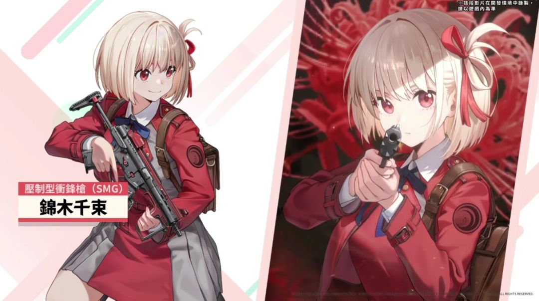※ 限时招募期间结束后的版本更新中,【锦木千束】将不会在普通招募、新指挥官专用招募、普通招募(教学指南)、社交点数招募、铸模道具、积分商店中取得。