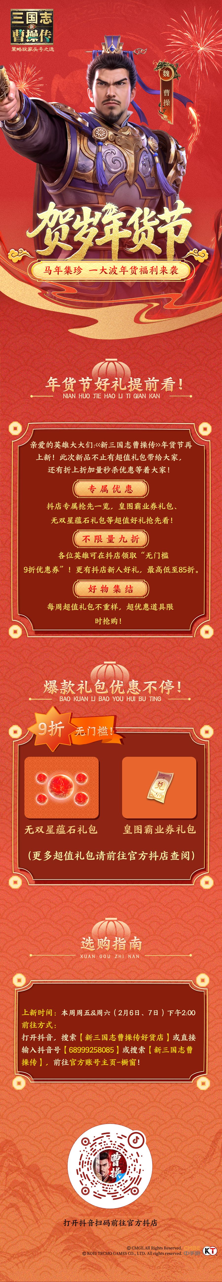 《新三国志曹操传》年货福利不容错过!爆款礼包云集,海量福利加码,解锁乱世霸业捷径,福利详情请查看下方长图↓