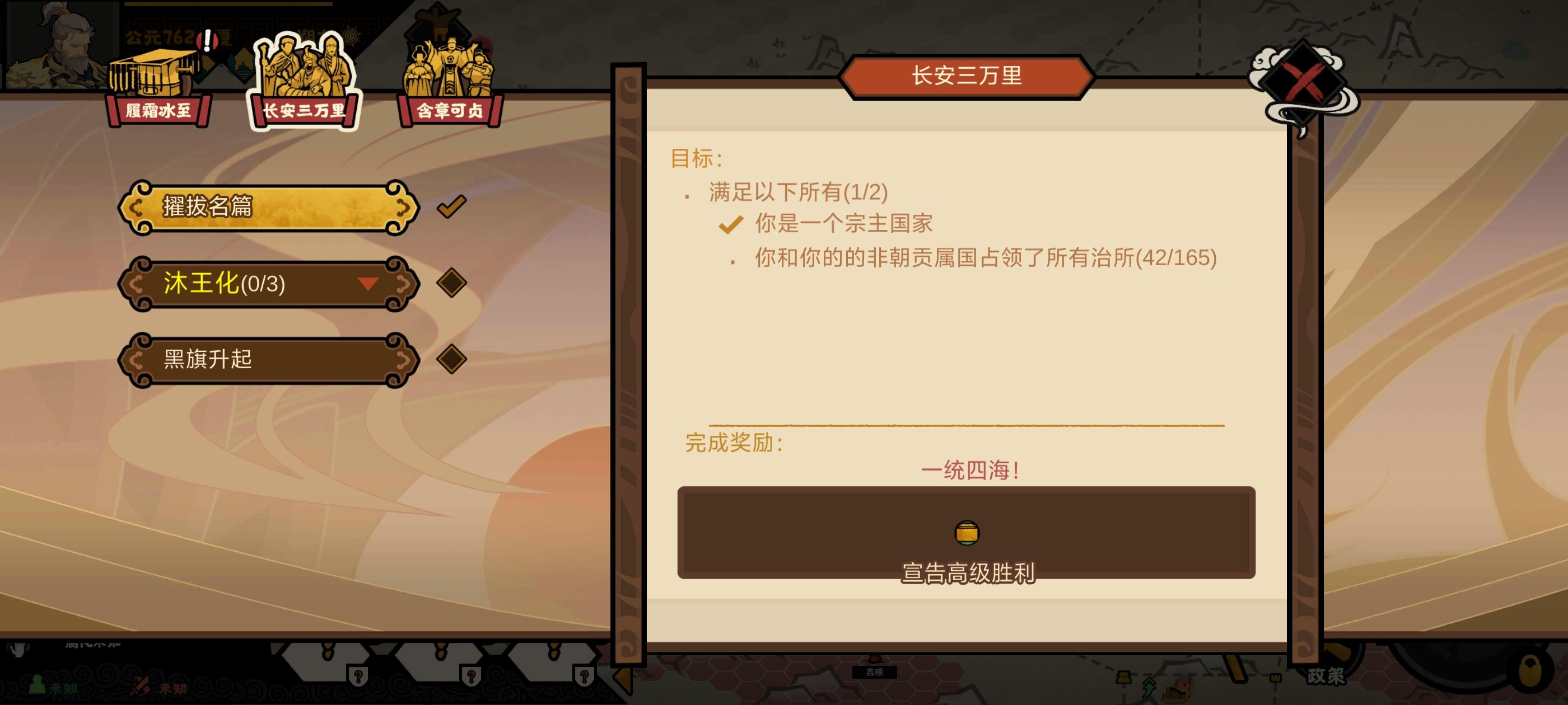 基本就是全部了,剩下和大唐没区别本来可以开都护府改军府一通乱杀,结果现在行政压力太大了,很💩你知道嘛,名篇造的我头疼欲裂。建议当场长期任务做每天传一点,困难应该好一点,挑战就更💩了