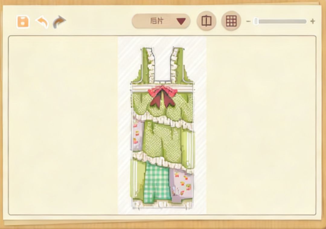 整主色调采用柔和的抹茶绿+浅绿格纹,搭配淡紫色碎花点缀,整体色调温柔又充满生机,像春日森林里的小精灵,清新又减龄。领口、裙摆、袖口都用了精致的白色蕾丝荷叶边,增加了甜美感和蓬松感,符合洛丽塔的经典风格。前片的绿格纹围裙+后片的碎花裙摆,既有复古感又不失活泼,拼接设计让整体更有层次,不会单调。领口的小蝴蝶结+后腰的大蝴蝶结,是点睛之笔,既呼应了整体风格,又增添了俏皮感。袖口的白色泡泡袖、领口的蕾丝花边、裙摆的小碎花图案,都体现了细腻的做工,让衣服看起来更有质感,充满手工感的温柔。