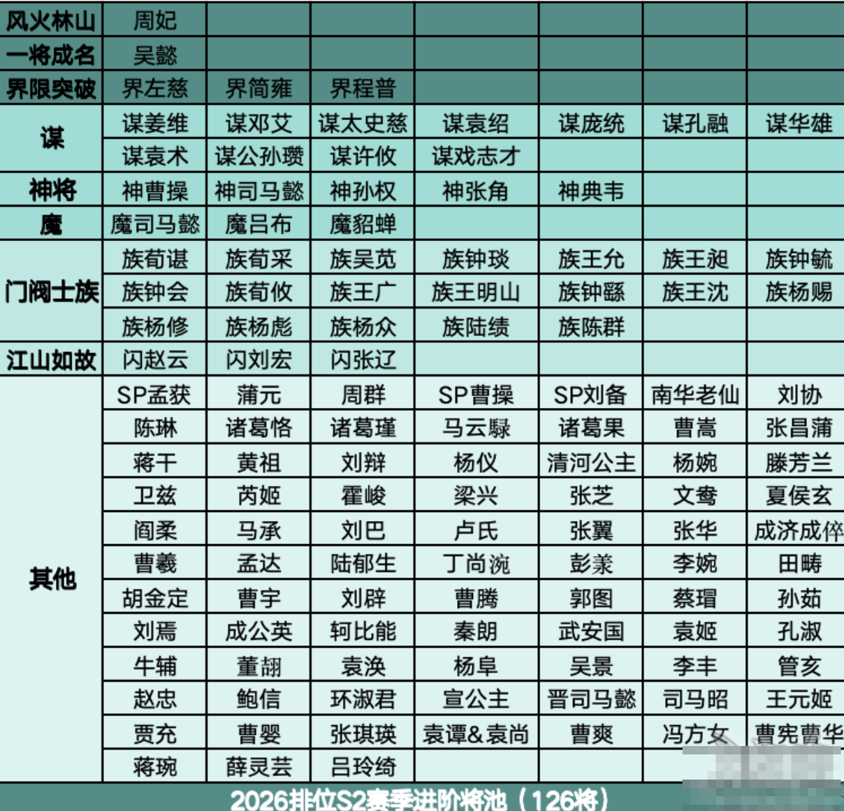 2026-S2排位将池梳理|界荀彧基础当关,仙魔族进阶乱舞