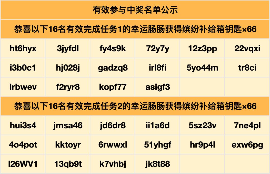 恭喜肠肠获得奖励~缤纷补给箱钥匙奖励将会在14个工作日内发放到邮箱,请注意查收!