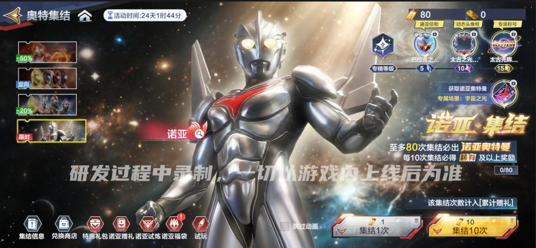 诺亚专属奥特集结卡池上线,各位队员可通过该卡池精准抽取诺亚奥特曼,解锁这位传说级奥特战士以及他的配套道具!