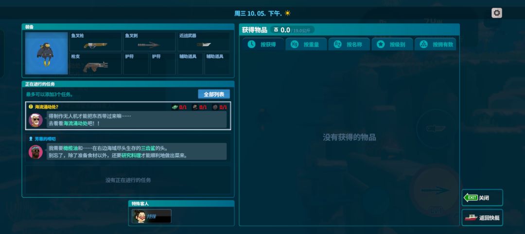 ⚠️快到黄箱界限,可以先打大重量🐟放着,去捡小东西凑数,但不能再切换界面,比如先打完虎鲨,不要再进入快递船内,如果进入,再出来可能虎鲨刷新没了