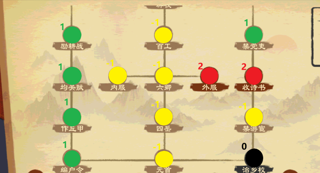编户令:-0.5/年盗风加成还算足,毕竟减盗风也就那几个,盗风过高会有时弊会有debuff,加骚乱,如果盗风被削落,则下调1级