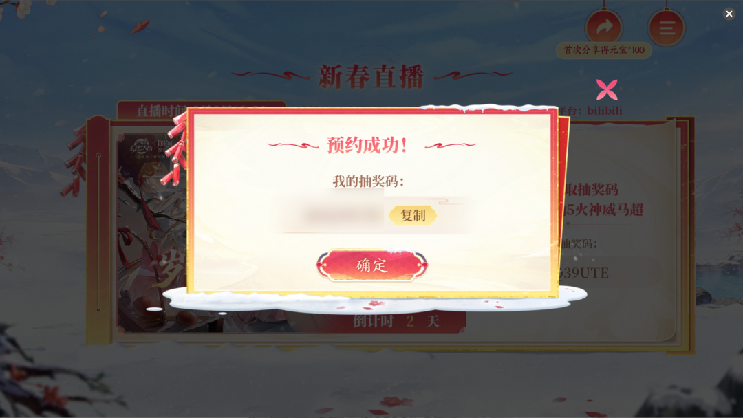 (4)点击【前往预约】按钮,预约成功后将获得抽奖码,凭借此码参与抽奖和兑奖