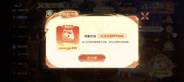 王者荣耀【心灵战警E9YU4A】我的小马糕今天999块,复制链接来我的市集出售,马年上分大吉!