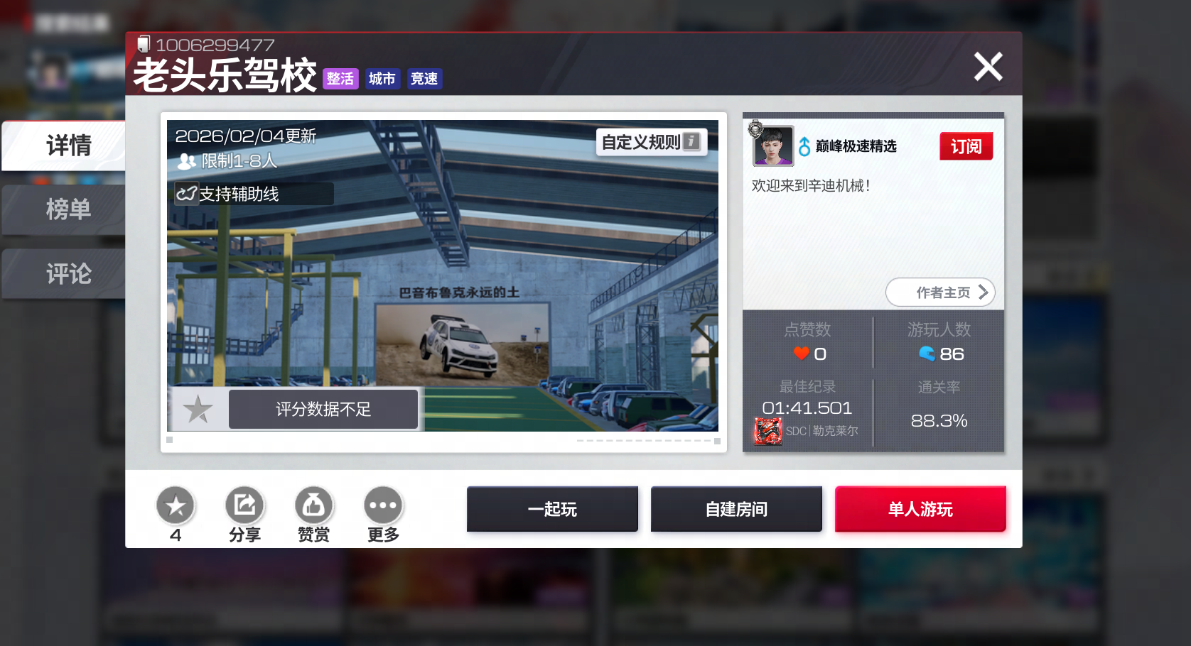 - 地图编号「1006299477」——老头乐测试场,破旧外表下跳动着一颗不死的赛车心;