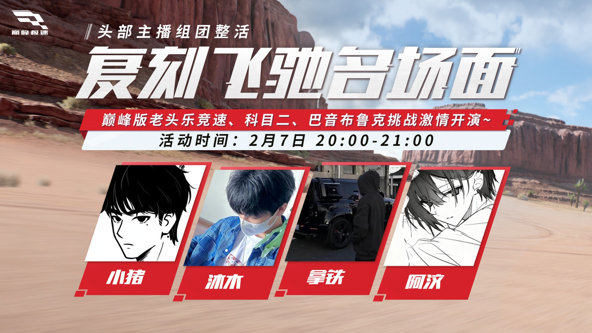 2月7日晚上8点,四位头部主播@小猪、@沐沐、@拿铁、@阿汶,自发组成“飞驰整活天团”,进行名场面复刻!