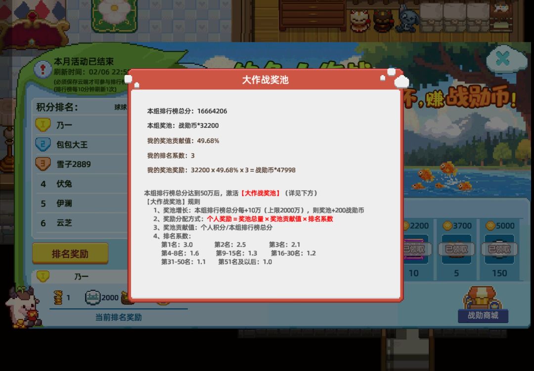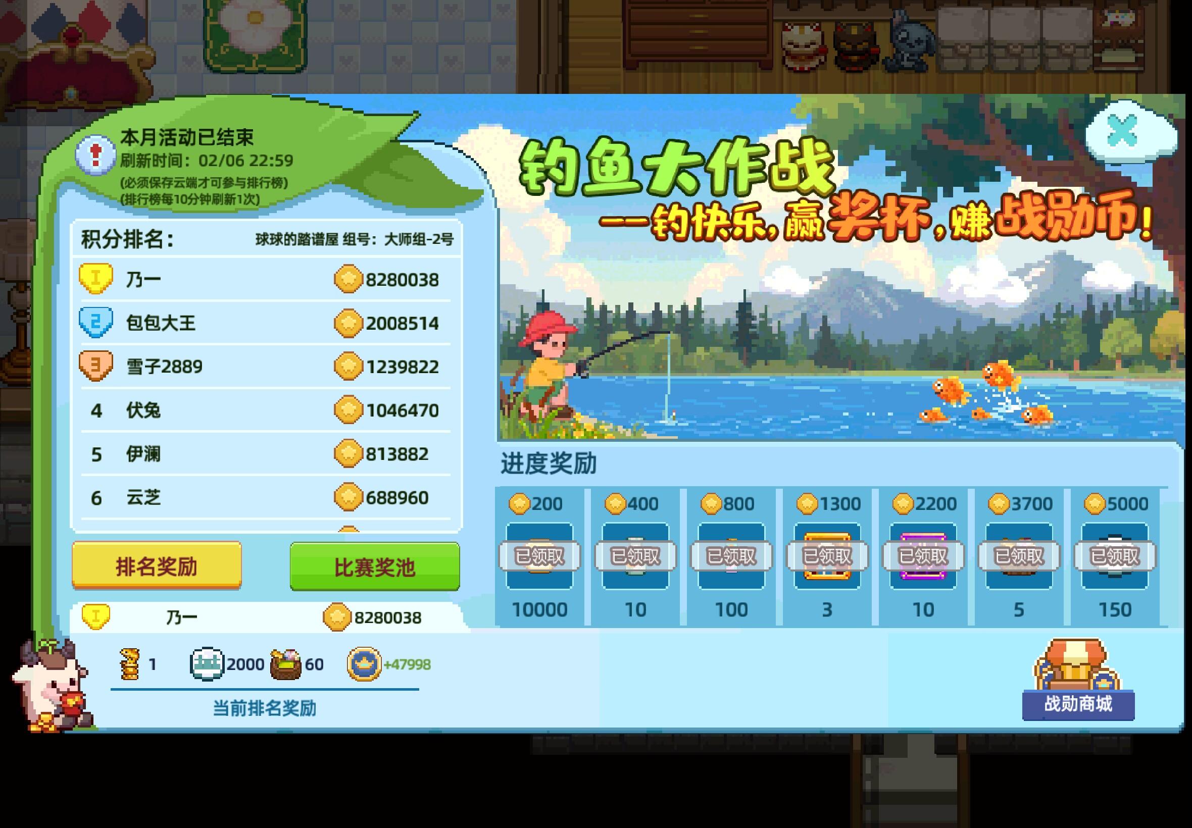 本期【钓鱼大作战】活动已结束。感谢大家的参与!现公布整个国服总分榜前五名“至尊钓手”: