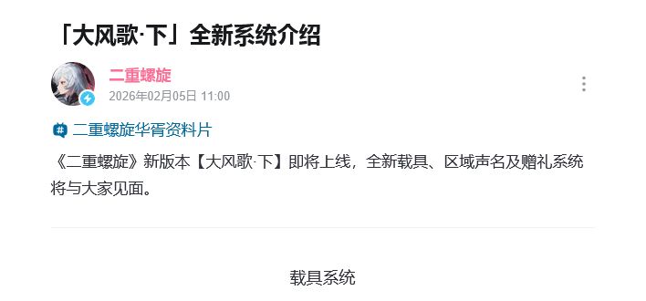 💥二重螺旋新版本爆料,出载具系统也就是坐骑了
