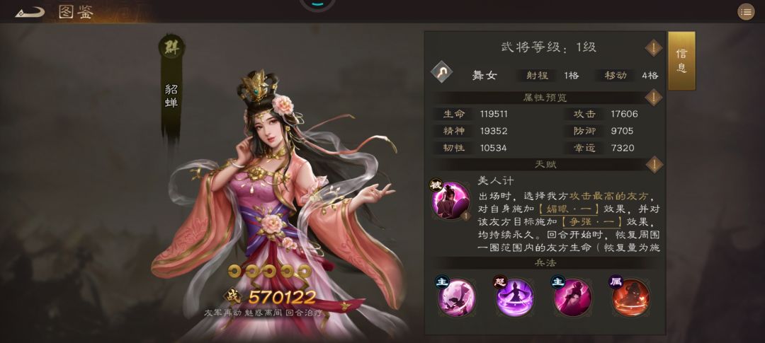 排名理由:铁打的辅助,流水的输出,最保值的无双武将。其核心技能闭月之舞(友军再动一次),从辅助吕布到周瑜,再到现在的马超,可以说貂蝉是最强输出武将标配的女人!此外,具备不俗的坦度,以及增减益回血等辅助机制,同样是一张百搭无双武将!因此,貂蝉这里排位第三。