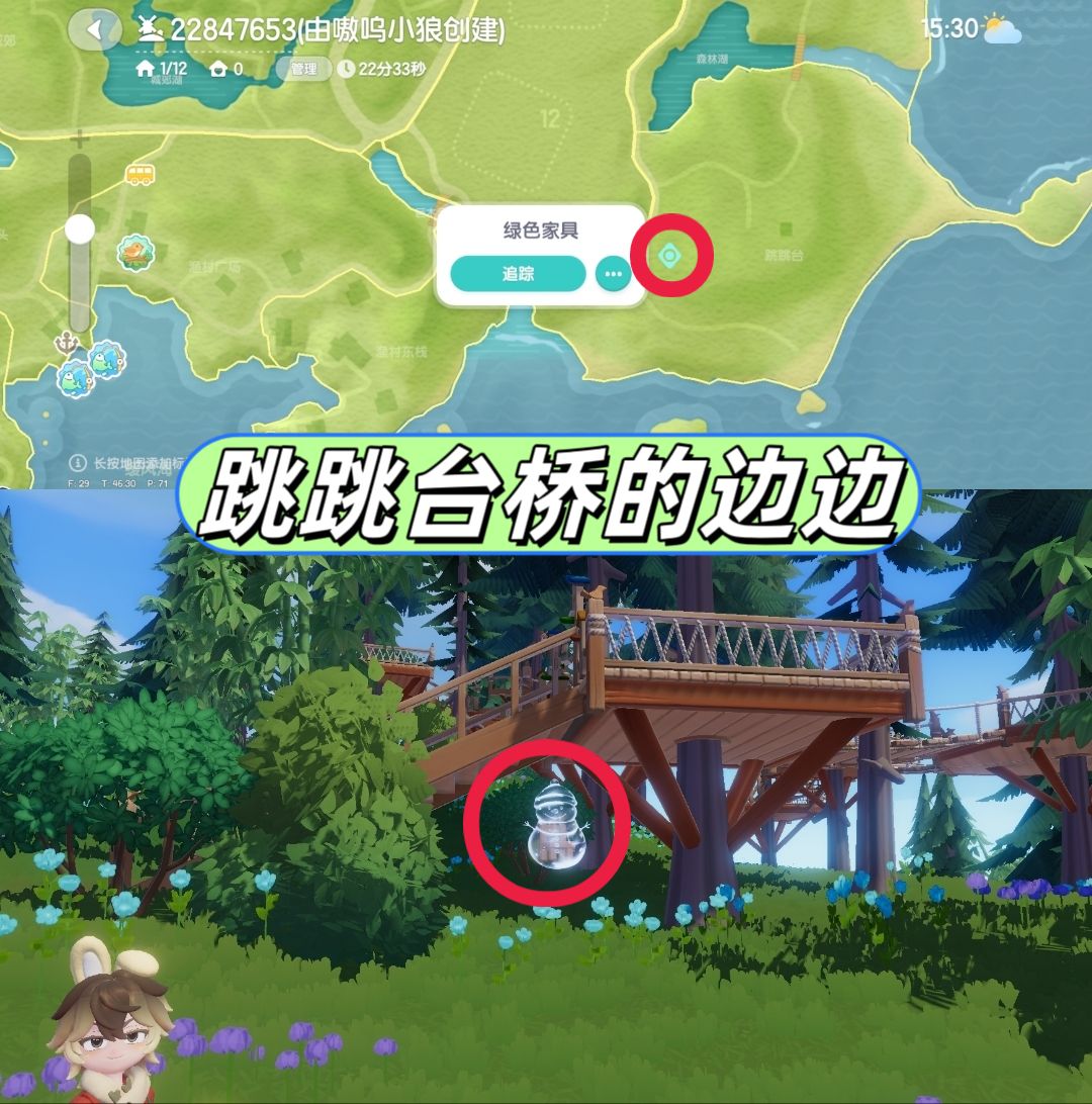 也可以通过其他人的家园摆设出来的泡泡家具拍照,再去对应的泡泡点位。