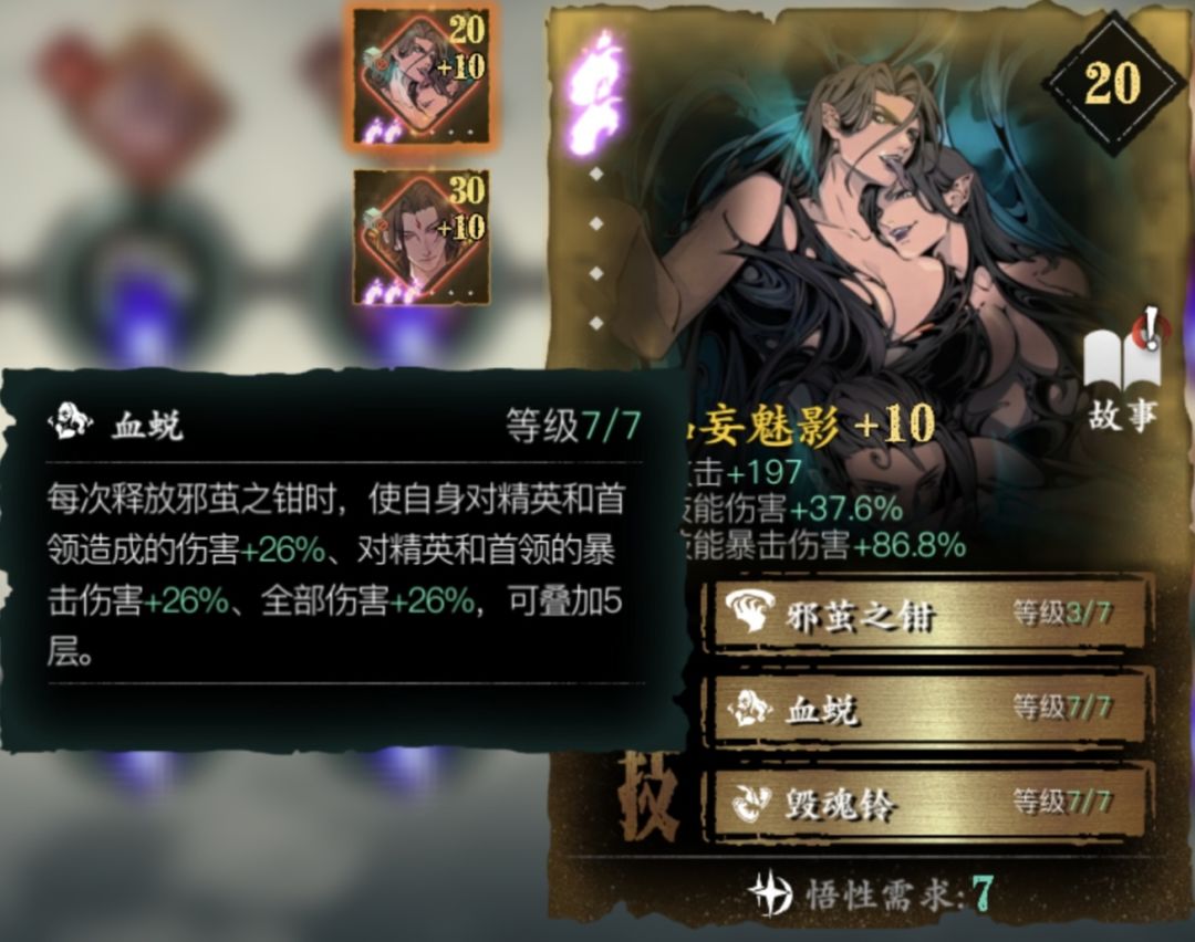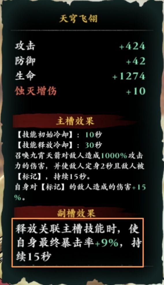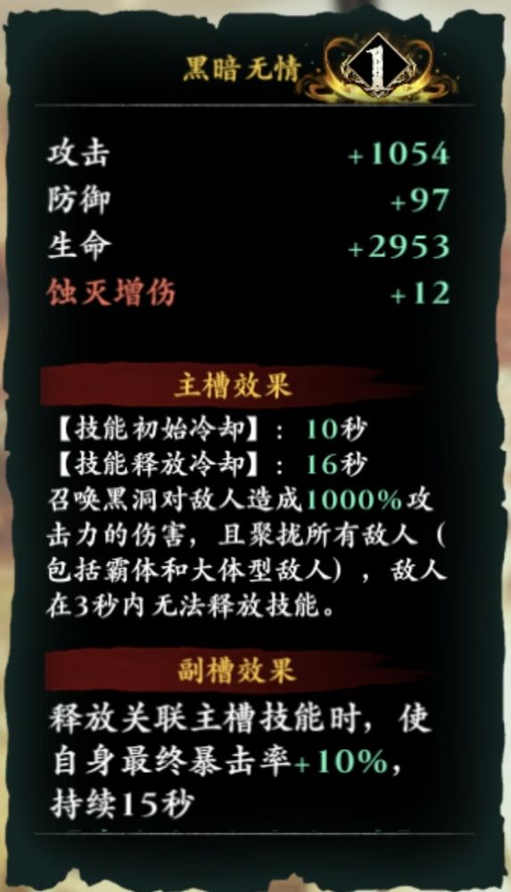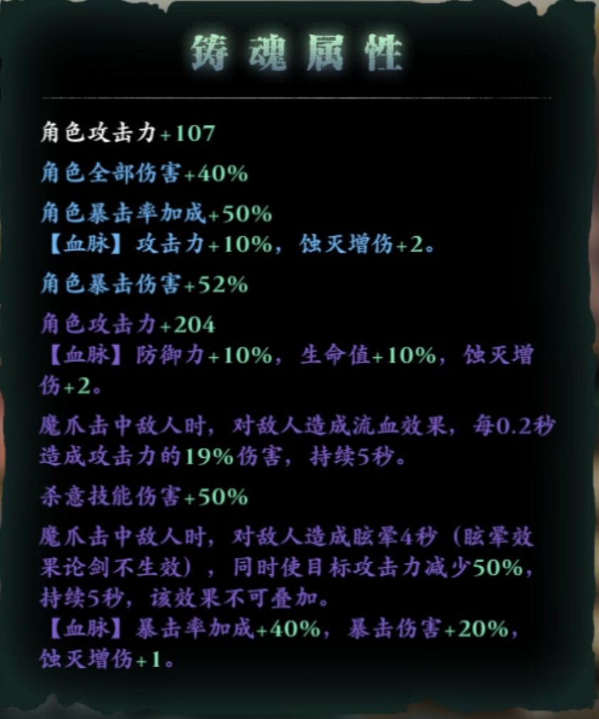 故,在面板属性加成搭配上应将多攻击词条卡作为主力输出技能的副卡,将有冷却词条卡作为高冷却技能副卡,将角色加成属性卡尽量设置为非输出技能的副卡。至于哪个技能高破甲还是高倍率吃技能暴击伤害加成更高还是吃技能穿透来的更实在,因为技能繁多且卡都不一样,所以很抱歉这个是没办法测试的,基本只能留给追求极致的大佬去自己慢慢尝试了。以上便是副卡搭配的第一条准则,第二条准则来自铸魂技能。