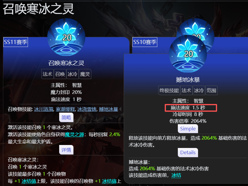 比如冰魔灵的终极技能的施法时间是1.5秒(图二)