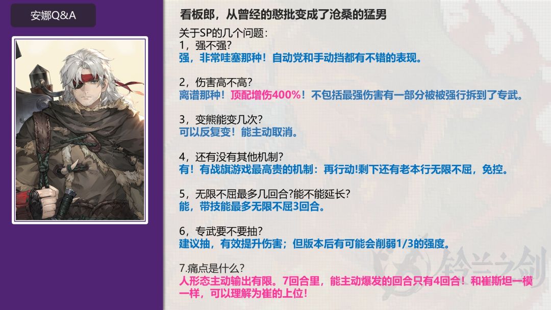1,就是SP熊强不强,强的,放到露西亚版本,在某种程度上,他确实是可以降低难度,能近能远。进能板斧丢飞虫,退能挨打反群怪。在所有的非高难关,自动会很舒服。对于凹分的手动挡大佬来讲,也是一张非常具有操作感的角色。