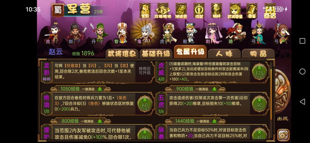禁卫军-受限经验,赵云只能点出一次援护,禁卫军能多一次,拿到丈八后还能执盾弃挡(怕打不中的可以先苦一苦石阵),有修砌也可以用挡来修箭塔