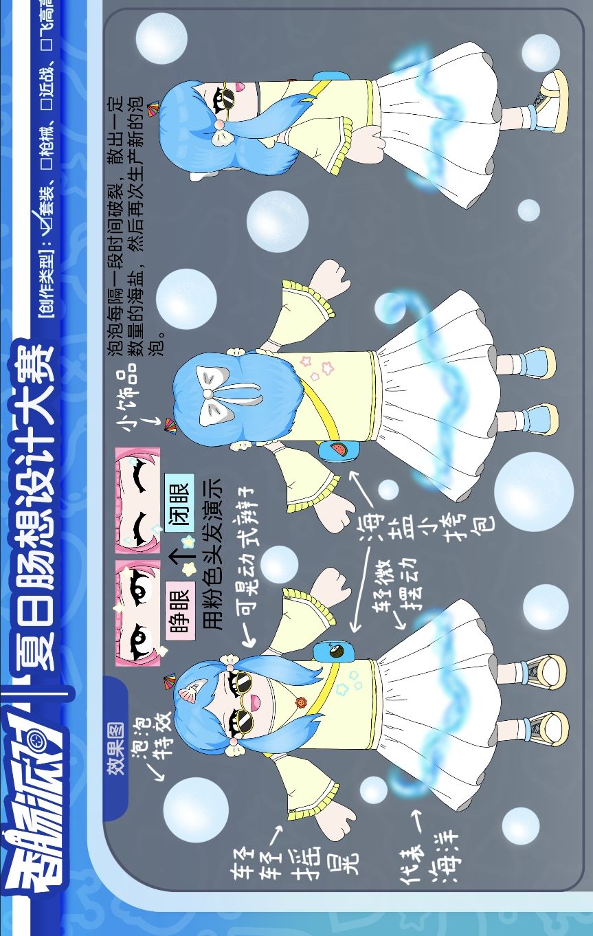 以夏日海滨度假为灵感,结合海盐和泡泡元素,设计出清新的元气少女类型套装。作者正式服ID:lsebrt