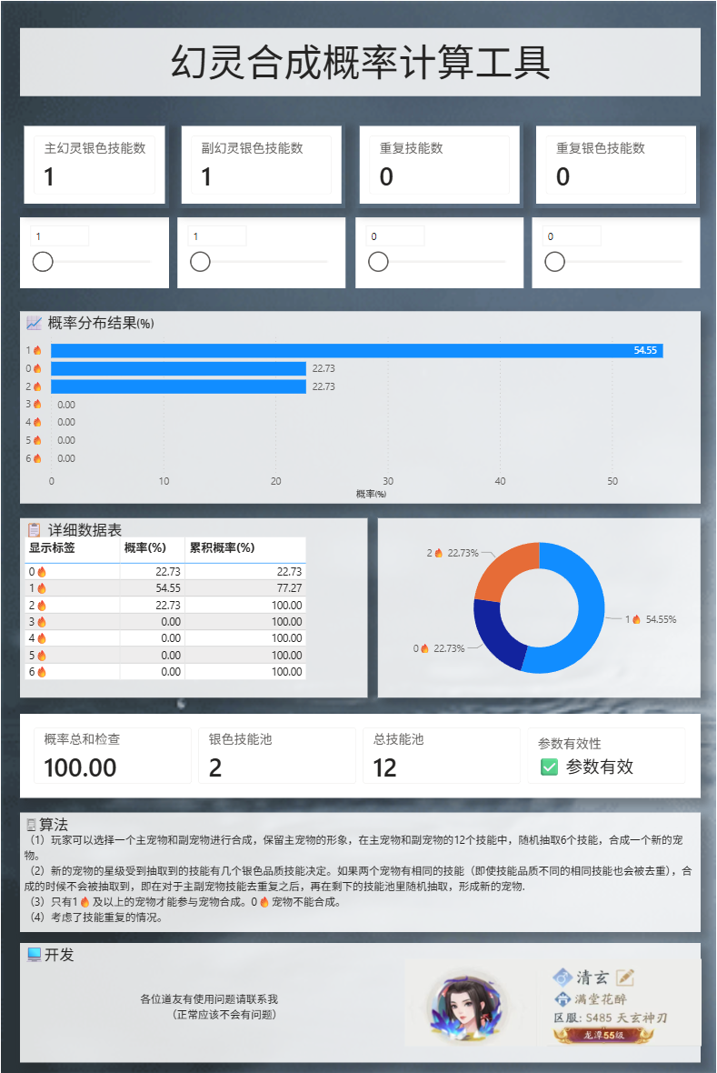 - 顶部四个滑块:主幻灵银色技能数、副幻灵银色技能数、重复技能数、重复银色技能数