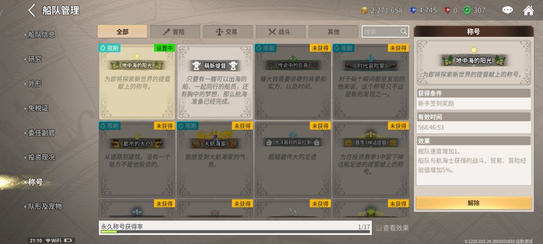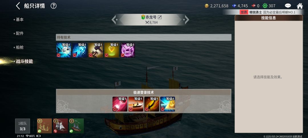 菜单船只里的战斗技能记得往下拉到极速登录法术,这样在海战中才会自动释放技能。