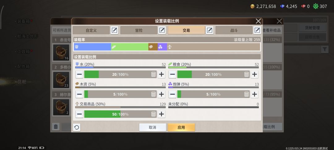 菜单仓库货舱里可以设置这个装载比例,找到交易把交易商品尽量拉高点。