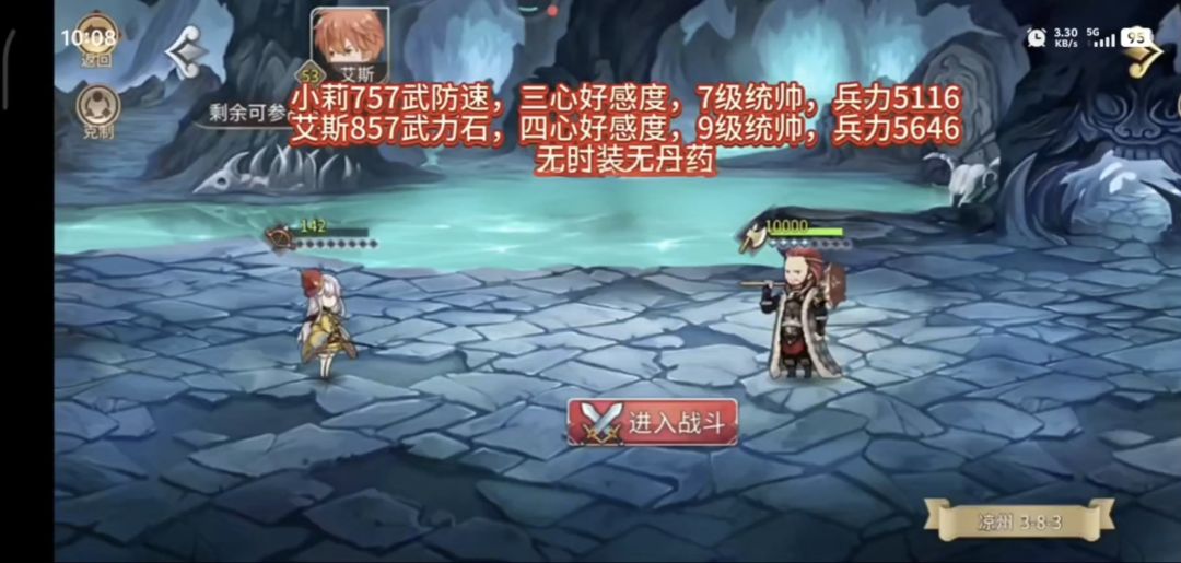 ,9人即可过一二战(张宝非必须)。此打法以115速太矢慈配三奶回复为核心,二战需要106速孔明提供buff,无丹药时装需要55级(太矢慈升55会加2点速度),关键速度达标也可以提前挑战。 三战打法这里也顺便给一个5心艾斯的打法,能最大限度降低小莉要求,之前51级时小莉需5心和三百万声望太奢侈给不起,现在55级只需要小莉49级3心和三十多万声望可以接受,就顺便拉起来做个攻略吧