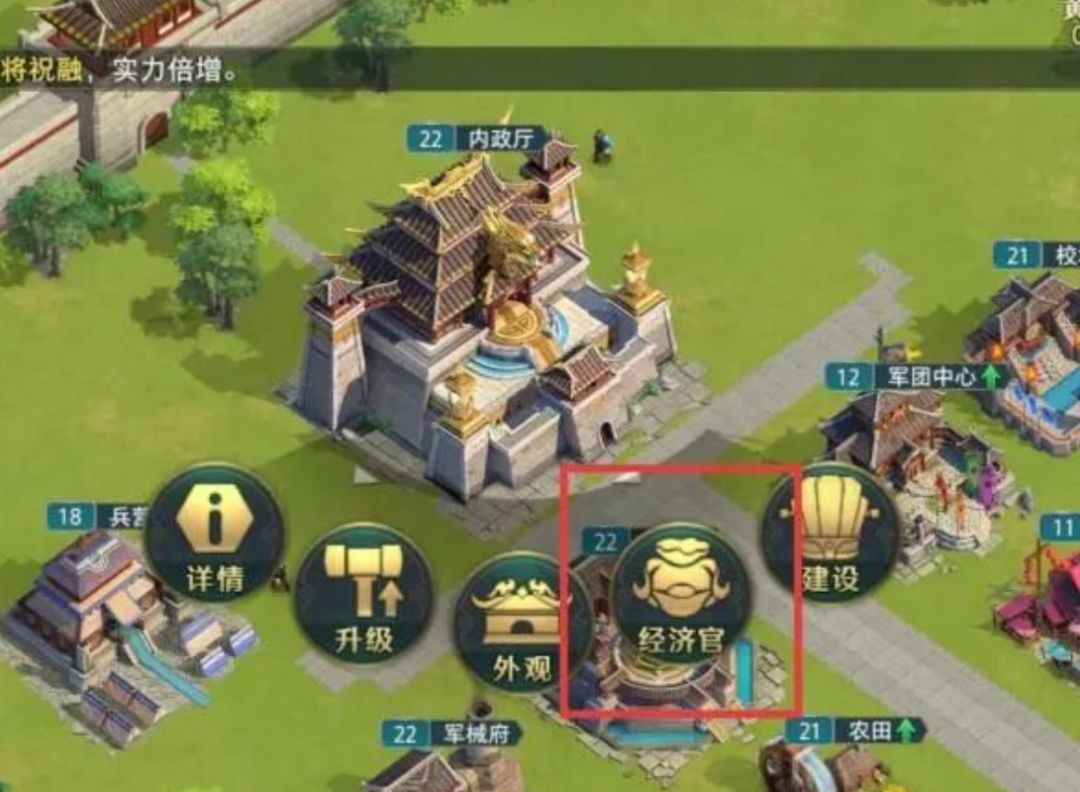 一般新手主公进入游戏后,都不怎么知道该怎么任命经济官来获取最大的收益,可能就会选择系统匹配的最前面的武将作为经济官。这里面就有一个小技巧,可能会比主公用的经济官获得更多的收益。我们首选经济官杨修,主要是升星,升星可以增加我们的资源产量。可能有些神将开始增加的资源产量较多,但神将碎片难以获取,不容易升星,杨修这个蓝将基本一周左右就可以升满星,满星是增加12的固定资源产量,前期资源很重要的情况下,这个增加还是可以的。