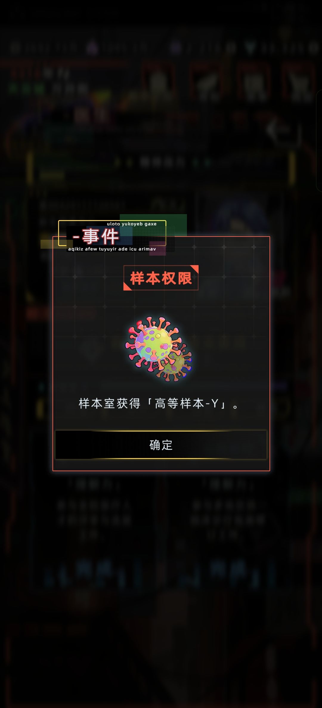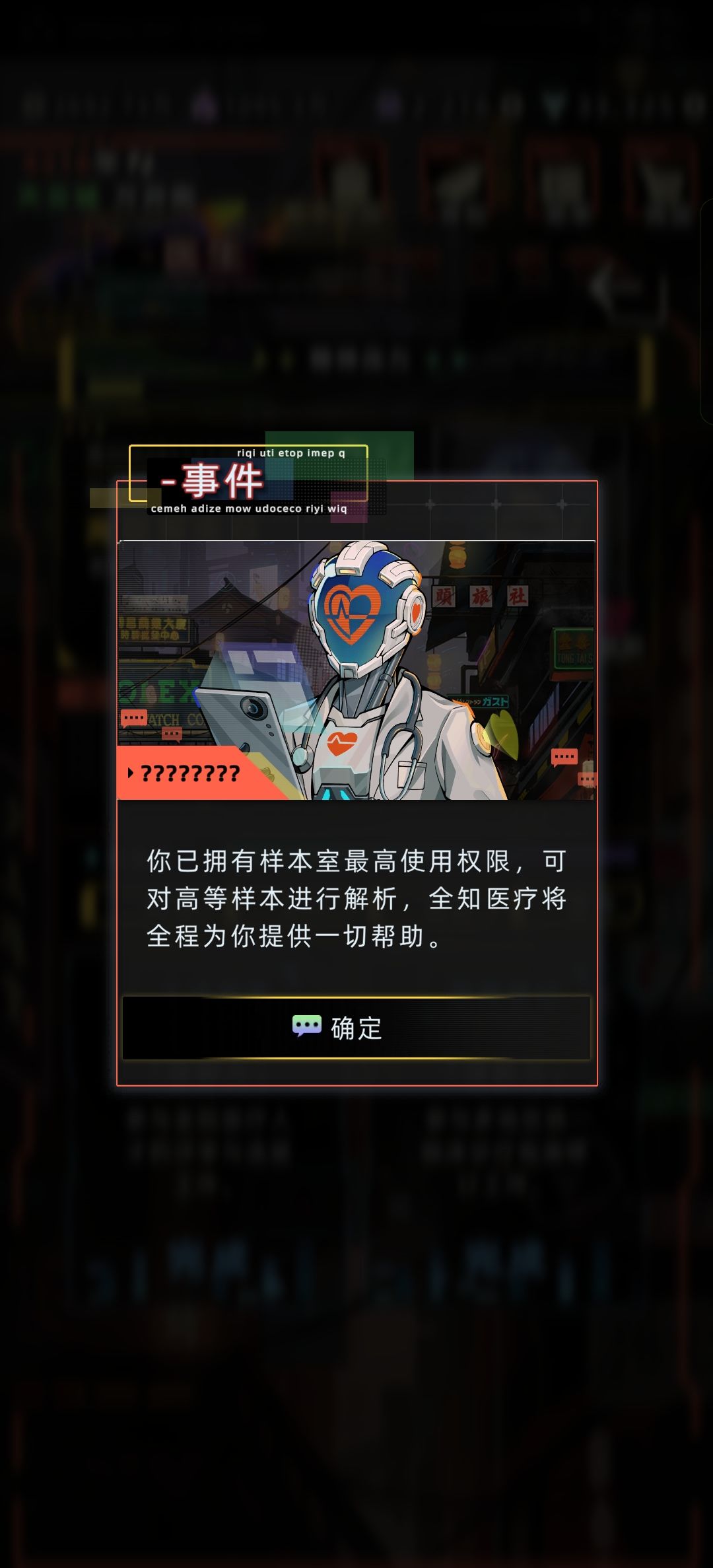 样本室:高级医生解锁样本室,可解析样本X、Y、Z、α、β,越往后解析难度越大,消耗信用点和科技点,解析完成后不再有花费。
