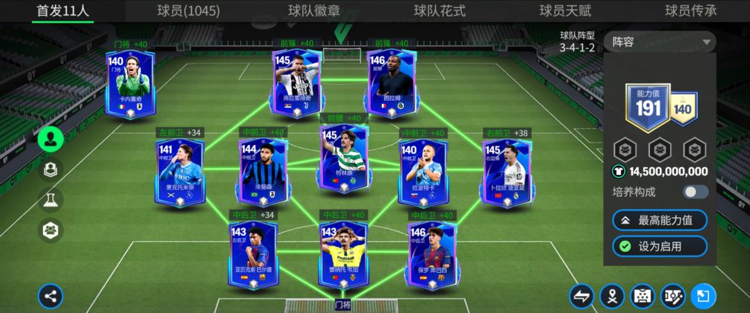 兄弟们,欧冠联赛活动正在火热进行中,本期文章,F宝组建了一支由欧冠联赛活动现役球员组成的队套,一起来看看吧!阵型推荐3-4-1-2F宝选择了极富中场控制力的3-4-1-2阵型,玩家也可以变阵3-5-2以获得更强的防守能力。