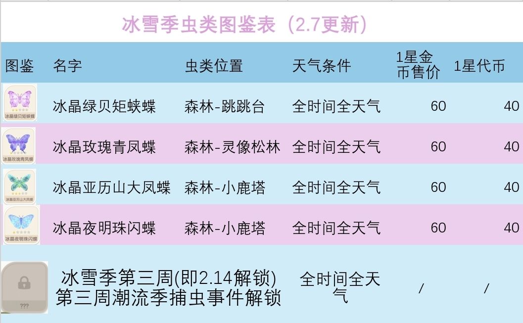 最后一个需通过捕虫事件解锁
