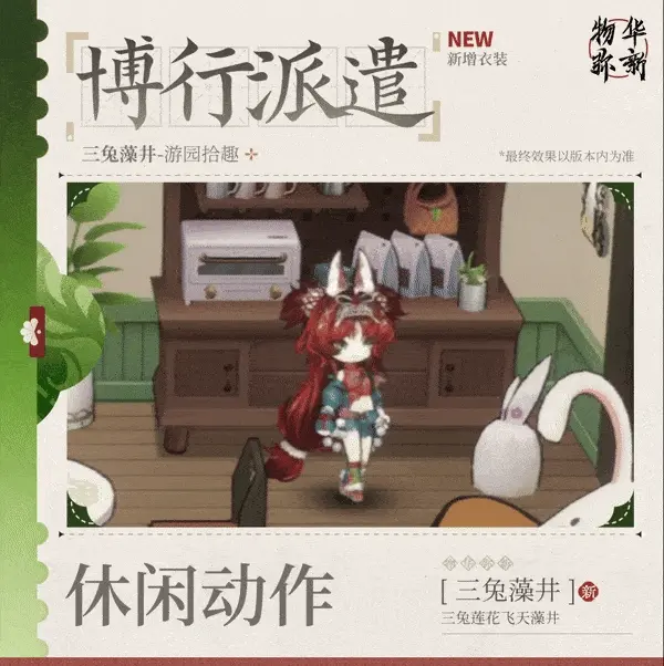 2月7日消息,《物华弥新》发布动态,公布新春系列衣装三兔藻井「游园拾趣」服装及其特效。