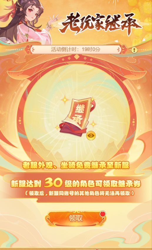 「老玩家继承」里的时装/坐骑继承功能助你轻松带走曾拥有的心爱装扮!注意啦!每个历史角色每种外观类型仅可被继承一次!