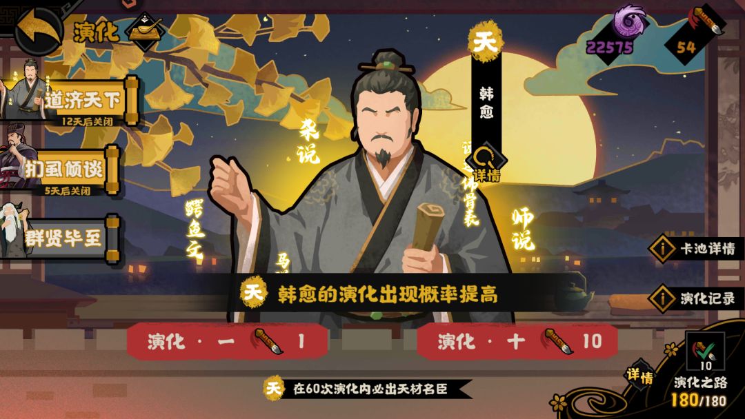 最后是名臣卡池,现在上线了韩愈,之后还会上郭子仪,这两个都是可以在安史之乱中刷取的。而且13号还会上线山海巡查使的活动,整个活动周期内还会有孙悟空、关羽、杨戬的卡池开放。所以就算你龙须笔多,也建议等山海巡查使活动开启了,再挑自己想要的卡池抽取。