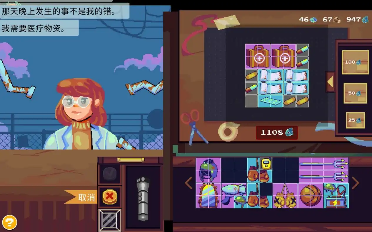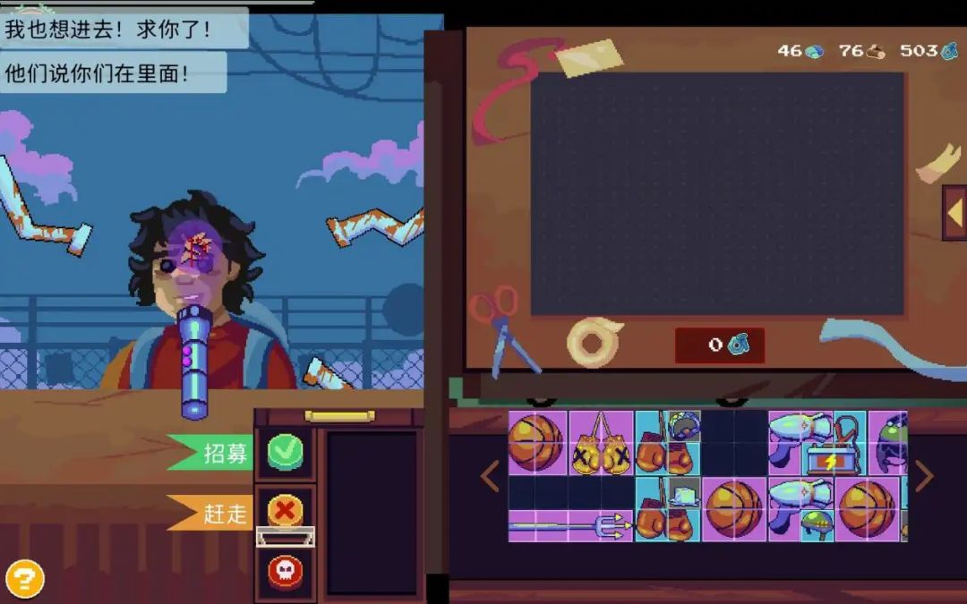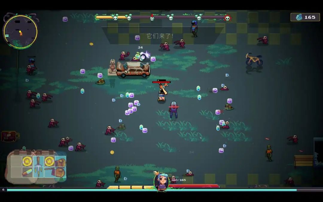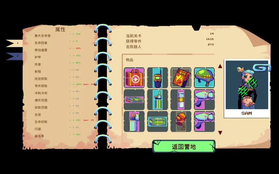 在本作中我们需要不断找箱子,从中搜集出各种物品,这些物品不仅可以在后面通过交易换“钱”(本作的货币是“零件”),放入背包后还能给我们操纵的人物提供攻速、伤害、血量等各种加成,这将帮助我们抵御一波又一波的丧尸。
