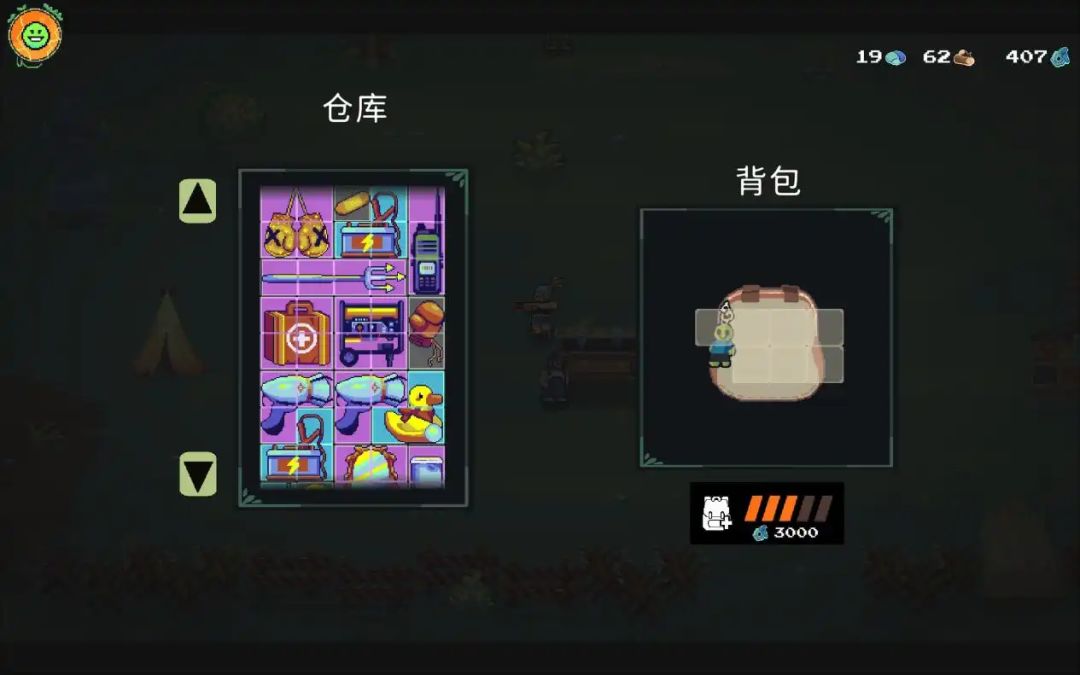 在通过关卡之后,我们便能回到营地休整一番。撤离成功获得的物品都会放到营地的仓库里,我们可以中挑选物品,为下次战斗做好准备。(花费“零件”还能给背包永久扩容)
