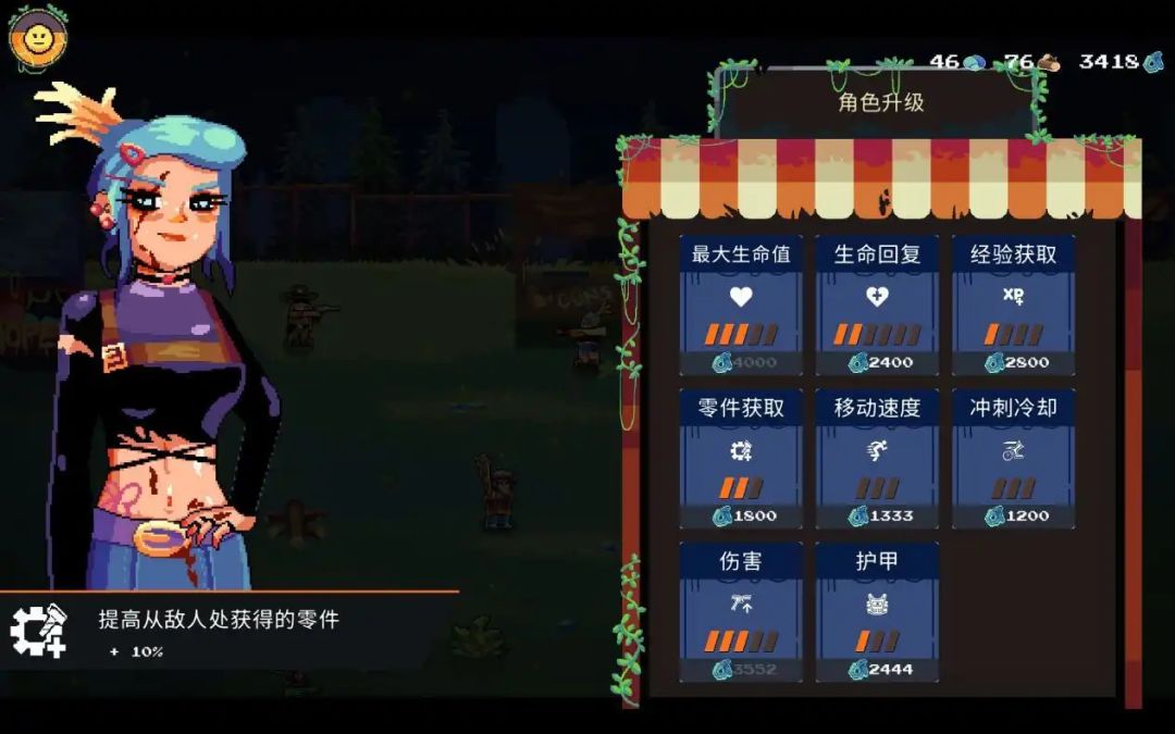 除此之外,在营地里我们还可以花费“零件”永久提升角色的属性。