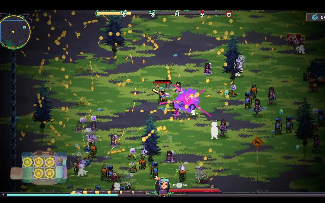 此外,每闪避冲刺一回,就会在人物周围“爆一次金币”,到时候满屏的金币能对敌人造成不小的伤害。
