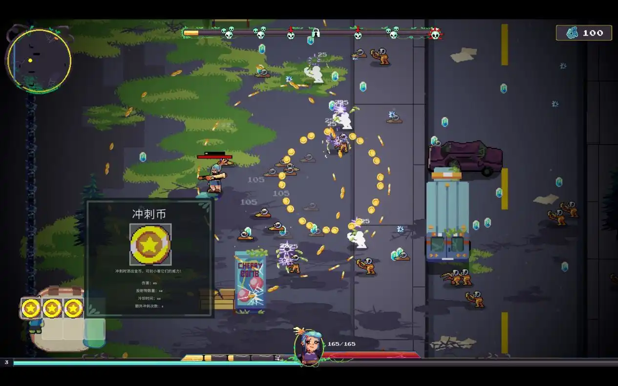 游戏关卡到后面会越来越难,不仅丧尸的数量会越来越多,血量也在不断增加,想存活下去就要好好思考如何构筑。那我要是想不带脑子只想爽玩该怎么办?游戏也给我们提供了官方“外挂”——“冲刺币”。