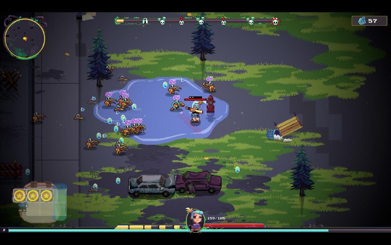 此外,我们操控的人物初始有两格体力槽,每次闪避冲刺都将消耗一格(有无敌帧),运用得当的话可以在尸海里畅游。