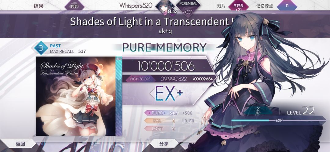 通过这几天的不断练习、爬梯,明显感觉到Arc比Phi的判定严很多,刚开始十分不适应这种迷之判定,导致2级曲都能爆出10个far来(爆far户