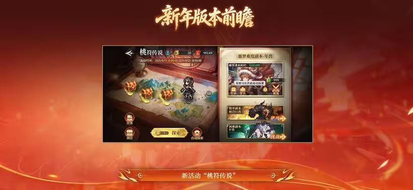 新活动桃符传说也跟着上线,打年兽夕兽这些传统妖怪,能换限定武器和自选箱奖励,此外新年限定卡池赤旧迎新春也将开启