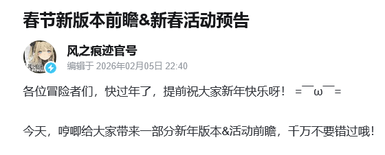 前几次因为程序BUG哼唧狼狈了好一段时间,大伙都希望希望痕迹(也就是哼唧)这次新年版本更新能稳妥点,早点开预留足够的修BUG时间,别再出现岔子了,大过年的出BUG影响体验也确实是不太吉利嘛