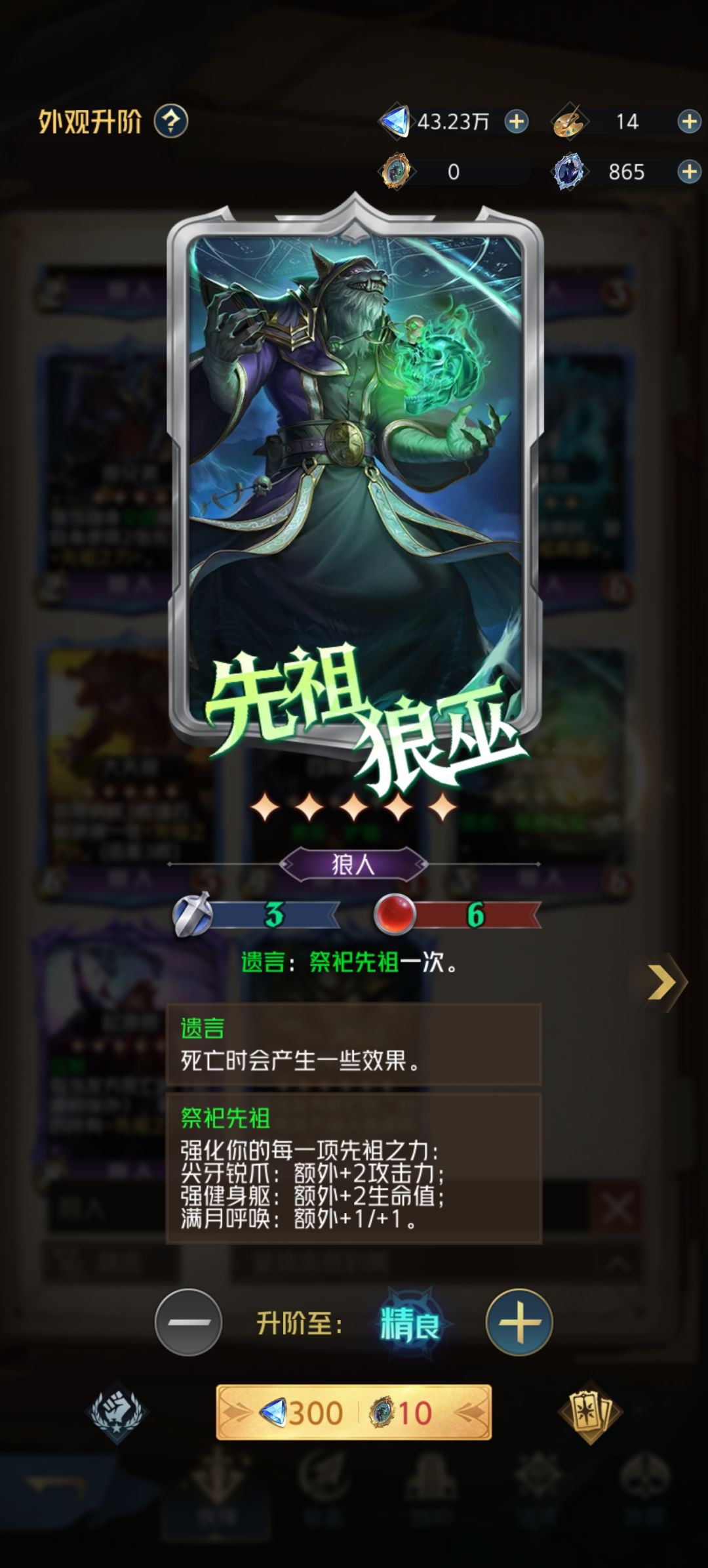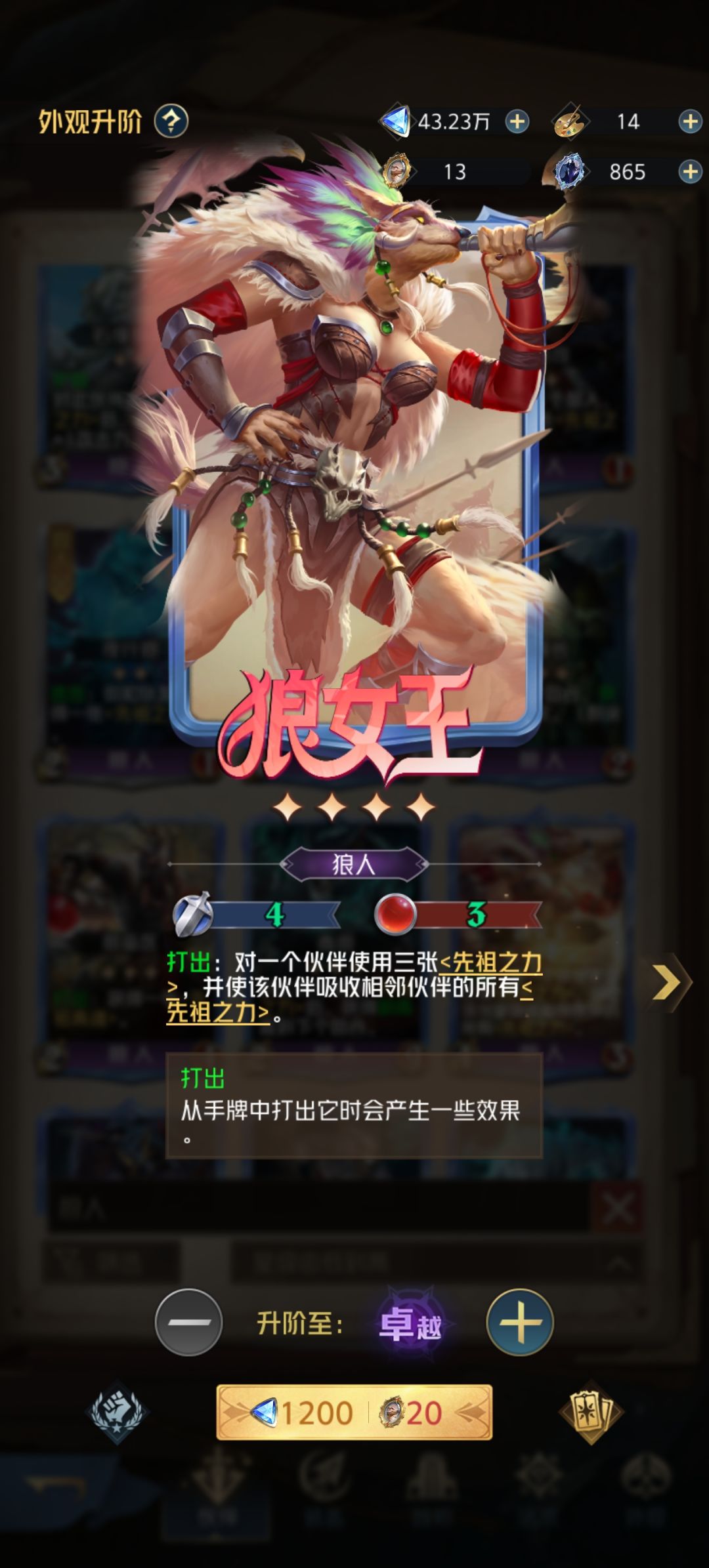 特殊:狼女王,转移先祖!后期换卡避免丢战力。