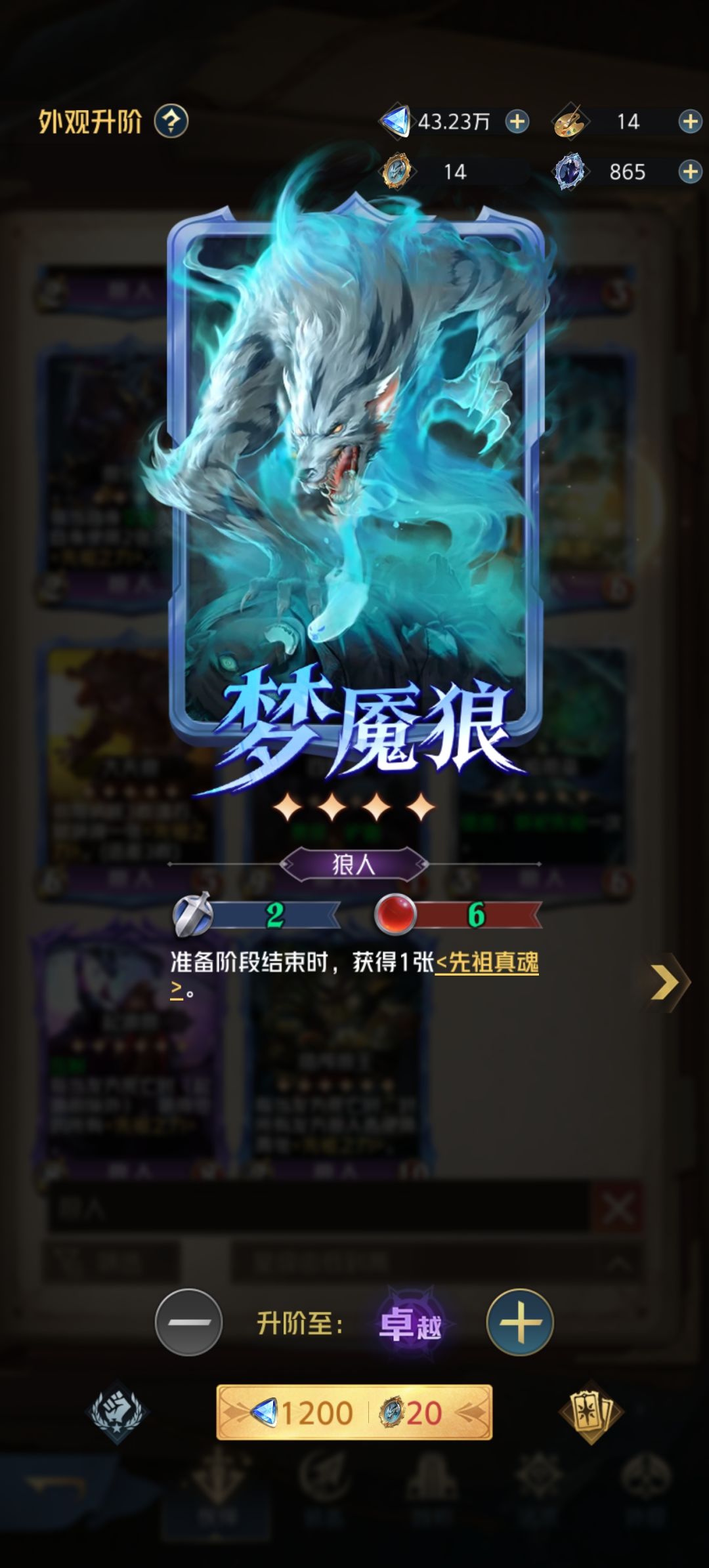 获取先祖之力:梦魇狼>大天狼>狼巫医/狼祭祀>雾狼/初征狼人>幼狼/献祭狼人
