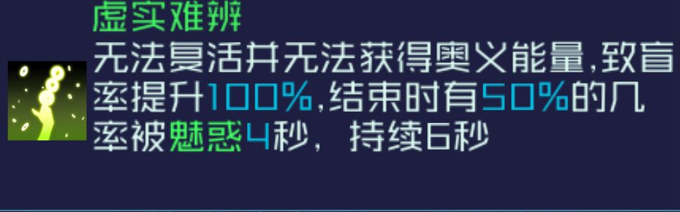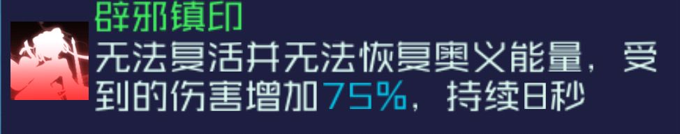 被动分别叠加20*2抗性(濒死可虚空回血回能)、20*2减益(增益debuff!)并且15层使不死和不屈失效,入场随机2人施加20层。奥义可禁活禁能并且真伤可直接秒人。