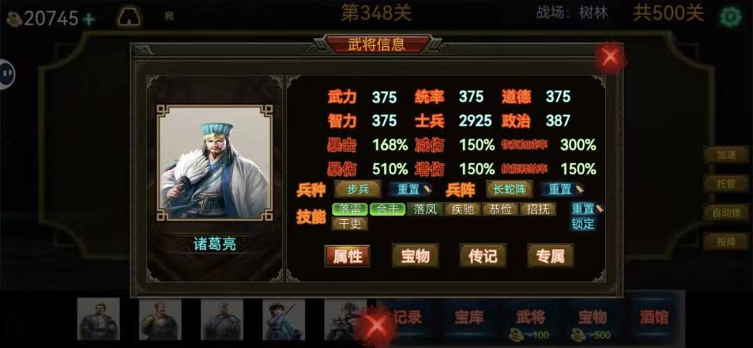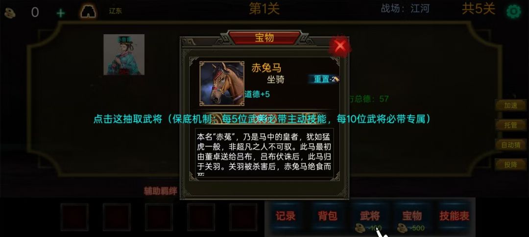二. 无宝物玩家可通关500关以上可获得一个随机永久宝物,以前获得第二、三武将继承位的玩家通关也可获得一个随机永久宝物。