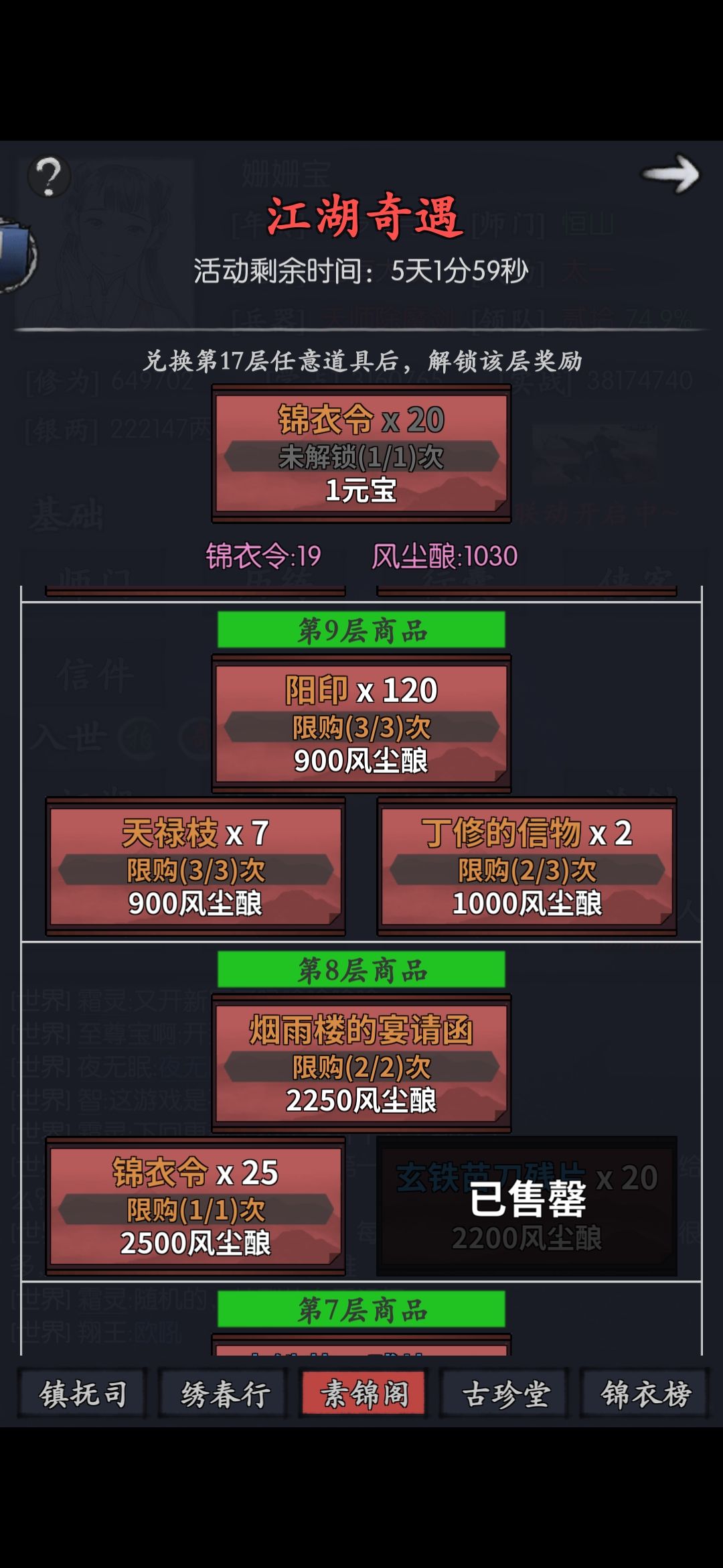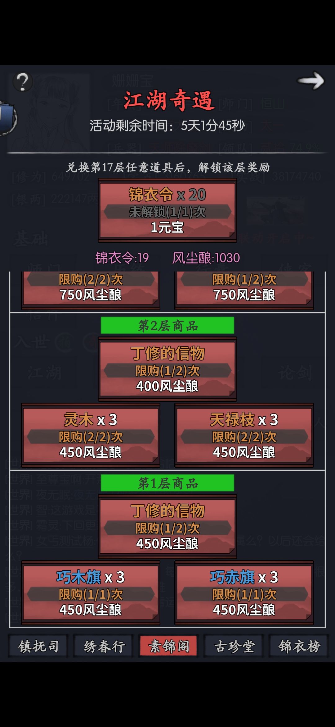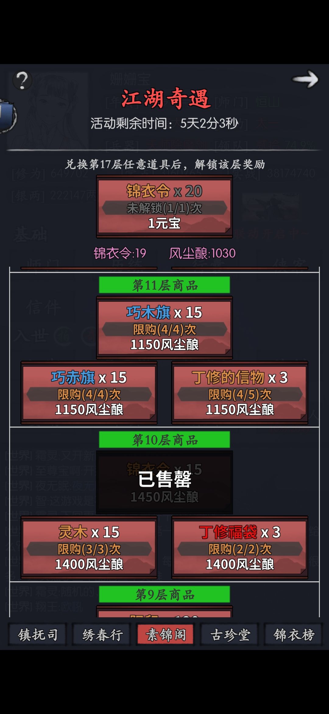 求一下大佬们,麻烦给贴一下丁修素锦阁的奖励截图,我只有16楼前的,想知道后面应该继续爬塔还是领信物,谢谢