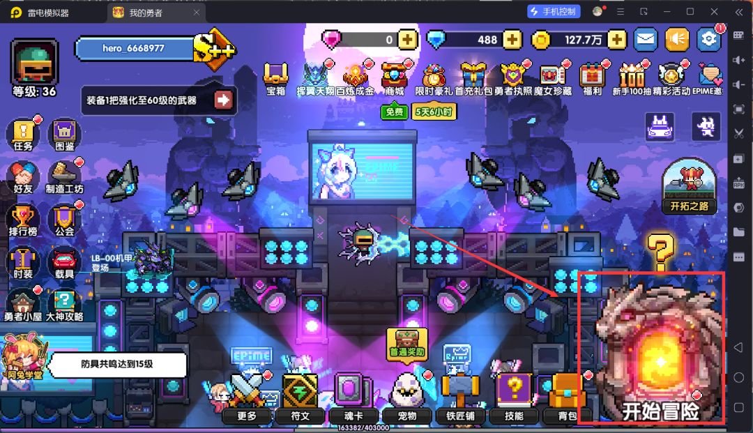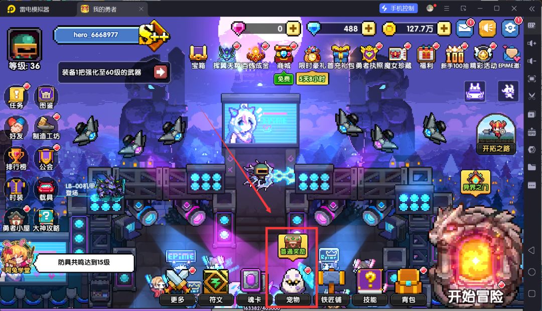 回到主城,然后我们打开体力锁