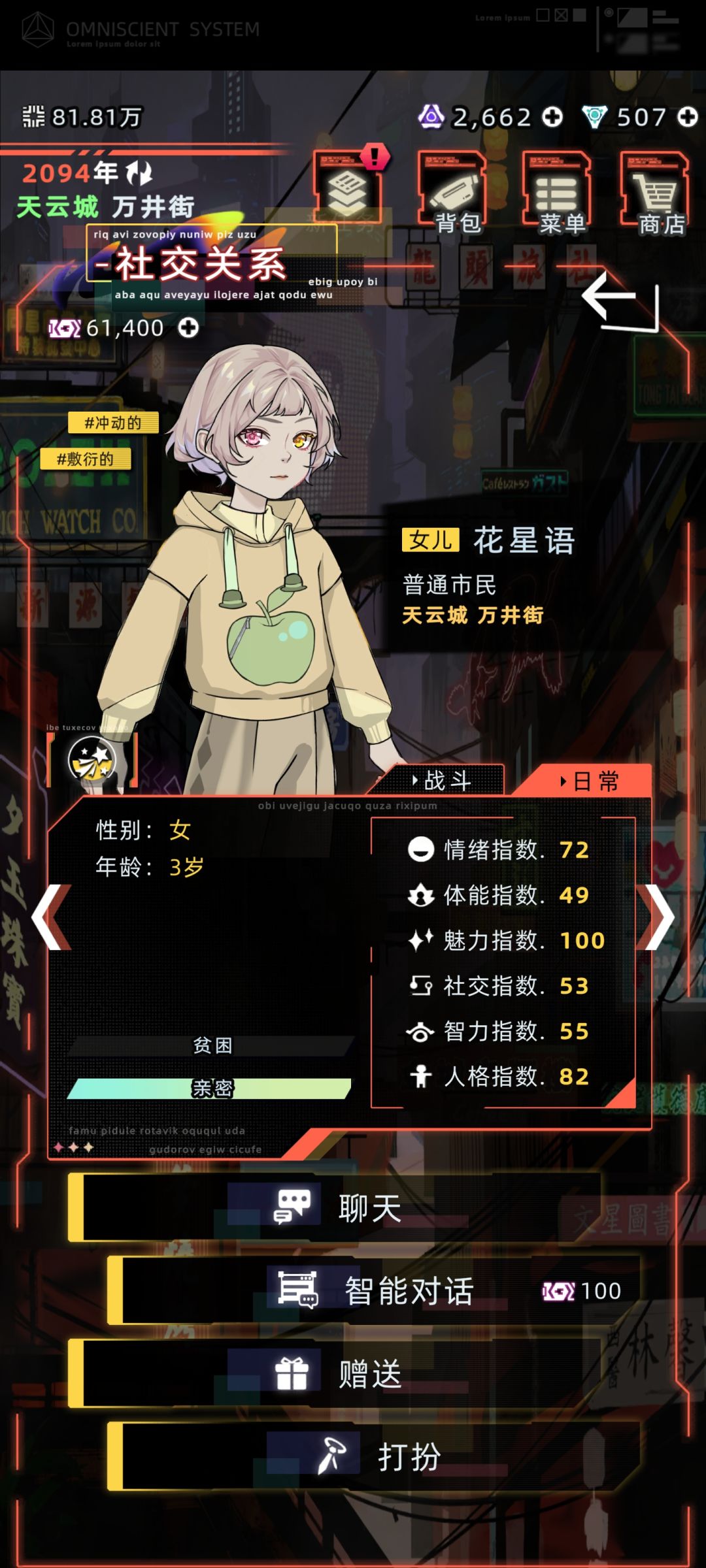 新增特殊角色:伽一(可攻略) 、花信风(可攻略)